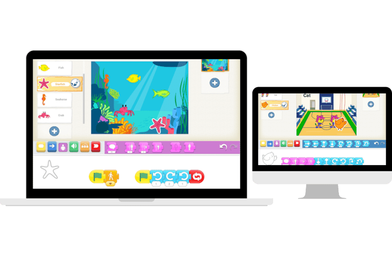 A través de la programación de historias animadas con una plataforma especialmente diseñada para niños en preescolar, los niños aplican su pensamiento matemático y lógico para crear secuencias sencillas de movimientos y entender el concepto de suma y resta al mover a los personajes de un lado a otro, así como secuencias temporales. ¡Las matemáticas están implicadas en cada instrucción!.