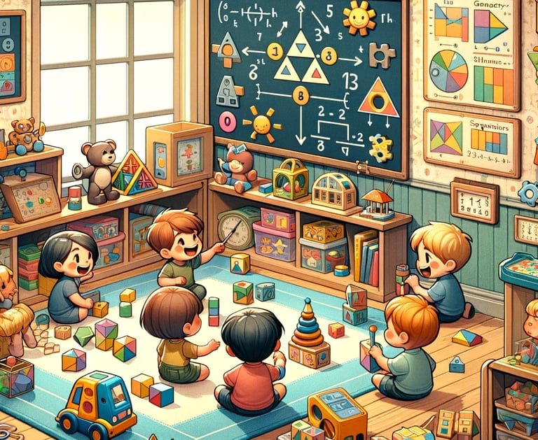 Los niños experimentarán con diversos conceptos matemáticos, tales como suma y resta avanzadas, geometría elemental, patrones, secuencias, conceptos básicos de multiplicación y división, medición (estándar y no estándar) y comparaciones, así como la noción de fracciones
